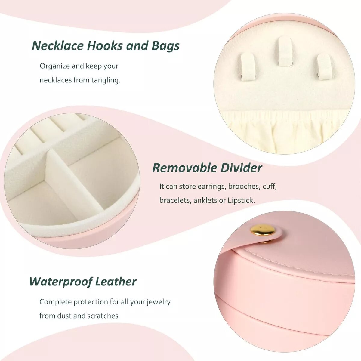 Materiales de alta calidad: exterior en cuero sintético y forro interior suave que protege tus joyas.