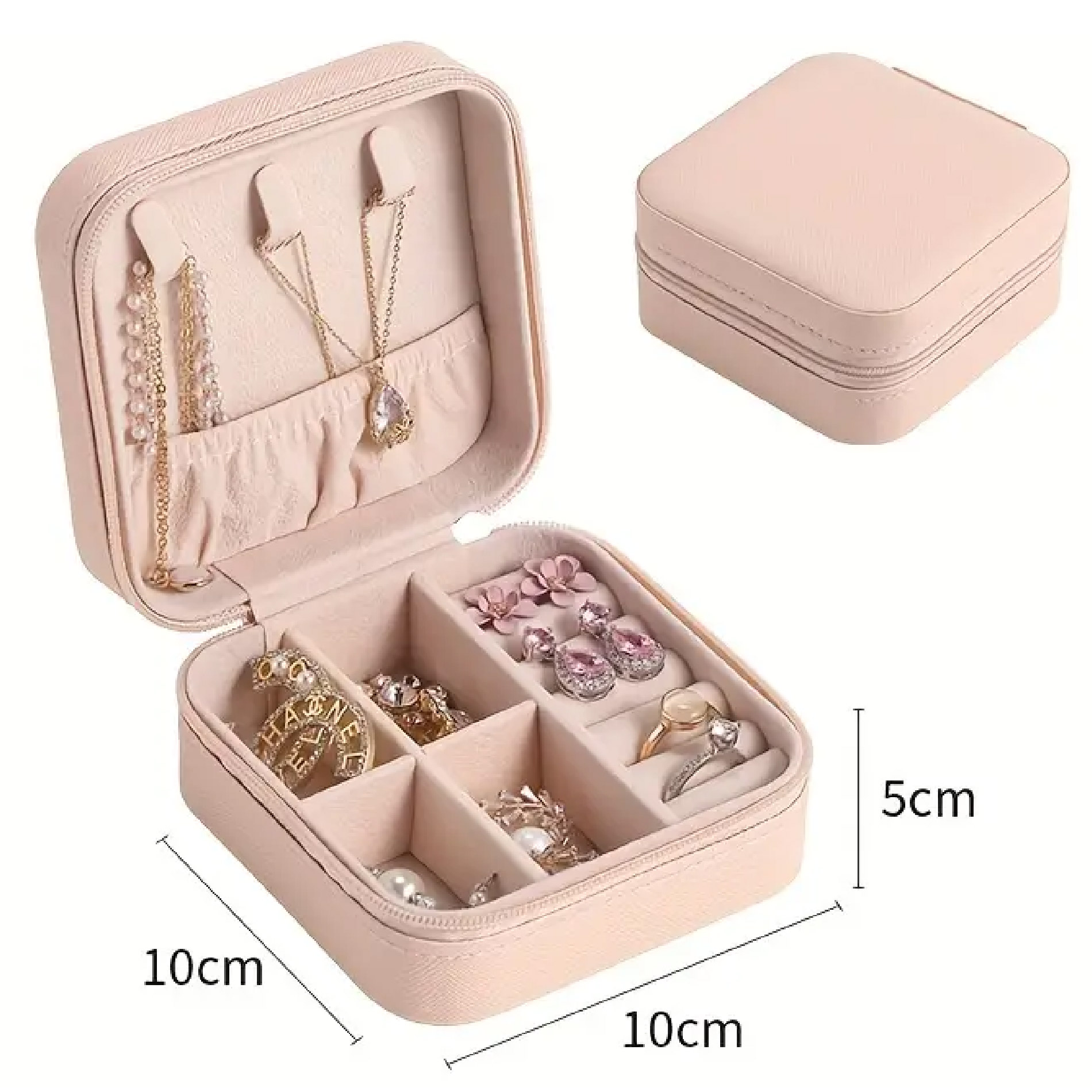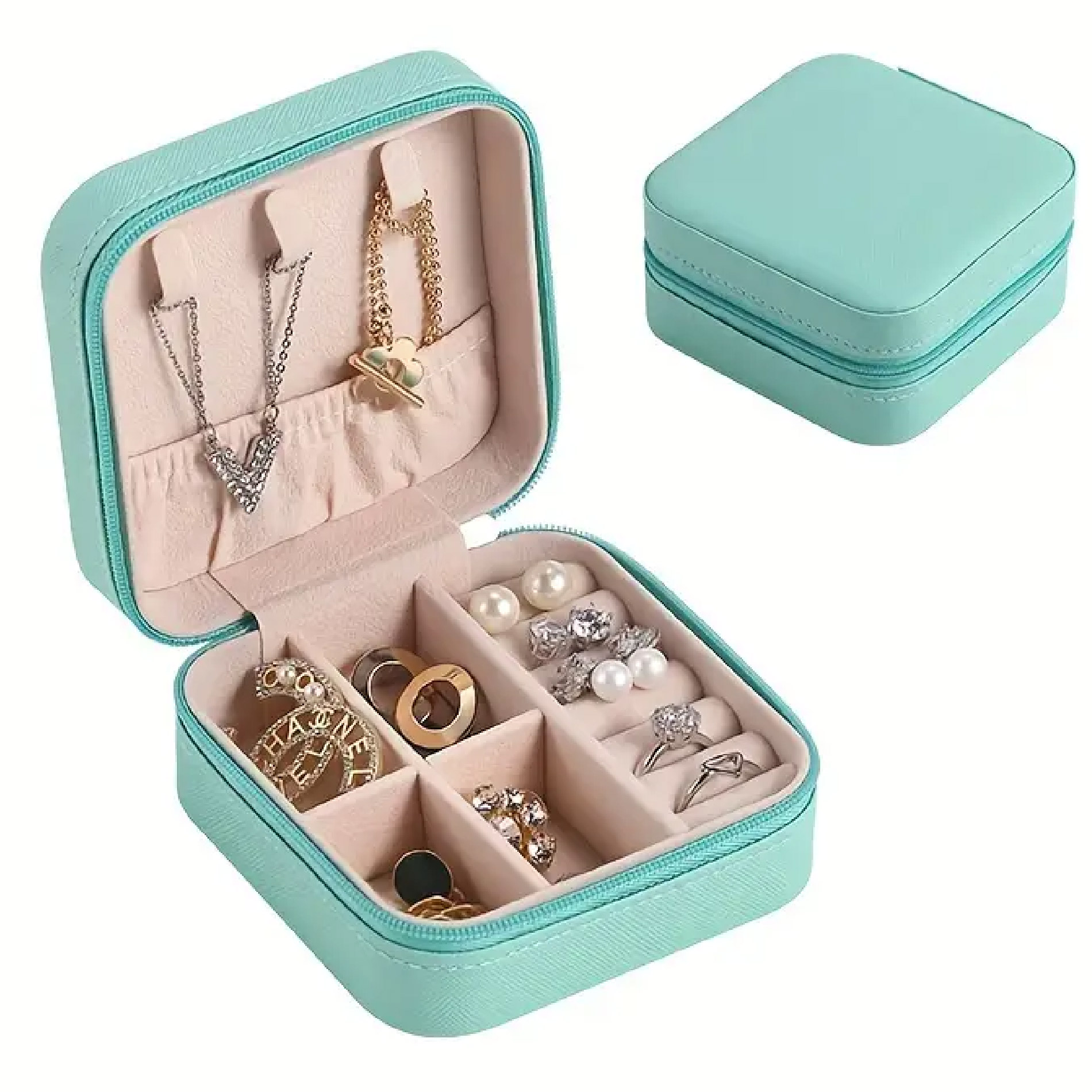 El Mini Joyero Organizador de Joyas Aretes es un práctico y elegante accesorio diseñado para mantener tus piezas favoritas ordenadas y protegidas. Ideal para guardar aretes, anillos y pequeños collares, su diseño compacto lo convierte en la solución perfecta para el hogar o para llevar contigo durante viajes.